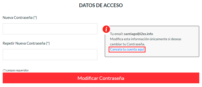 Puedes elminar tus datos de nuestro sitio desde la configuración de Mi cuenta, haciendo clic donde muestra la captura.